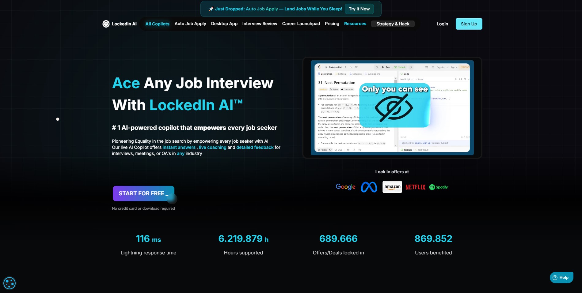Have you ever wished you had a personal assistant whispering the right answers in your ear during a high-stakes interview or a critical meeting? That’s exactly what LockedIn AI is. It’s an AI-powered copilot specifically engineered to give job seekers and professionals a competitive edge. It provides instant, intelligent answers, code solutions, and live coaching, helping you navigate complex conversations with confidence. Whether you’re facing a tough technical question or a behavioral query, LockedIn AI has got your back.