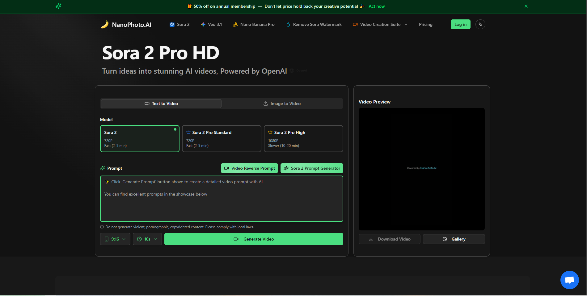 By consolidating Sora 2 and Veo 3.1, Nano Photo AI offers a seamless workflow for creators who previously had to jump between multiple websites.
